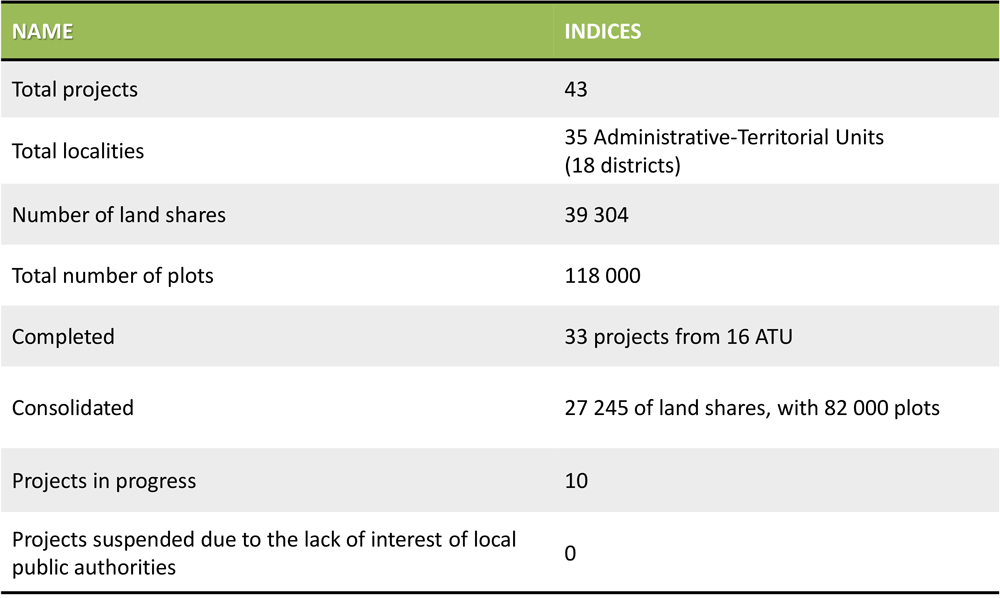 | Land consolidation is a process of primary influence on the outlook of rural development, especially agriculture sector and includes a complex of organizational, legal, economic, cadastral measures,which aim formation of massives or lands compact in space and stable in time, creating optimal conditions for their rational use destination. At the state level has been developed and approved project aimed at land consolidation activities in the period 2012-2027 - "National Strategy for Land Consolidation". Necessity. Excessive fragmentation and small areas of infield, as a result of privatization reform, allocation of the land shares for peasants in agriculture sector, have resulted in significant loss of agricultural productivity, failure of processing technologies and crop rotation, soil degradation, impossibility of implementing agricultural practices economically viable and environmentally friendly, that worsening environmental conditions. Predominance of family farms and farmland inadequate structure, causes a undeveloped rural infrastructure with a perspective of slow development of the agricultural sector. Relatively low incomes in rural areas, causing a migration of the people from villages to the cities of the country and beyond. ![]()