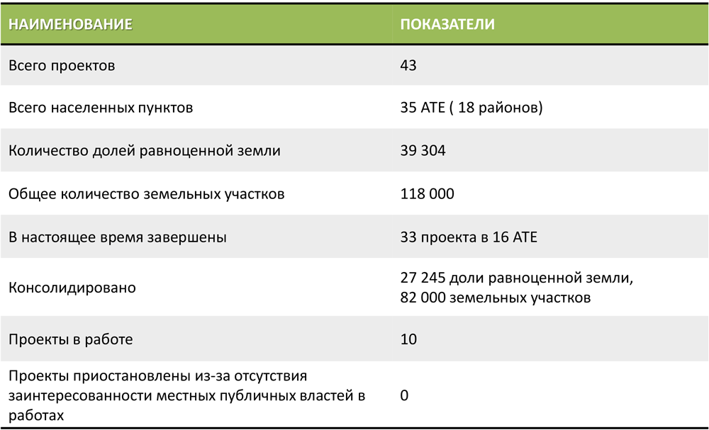 Консолидация земель (2003-2017)Консолидация сельскохозяйственных земельПеречень хозяйств, в которых Г.П."Проектный институт по землеустройству",