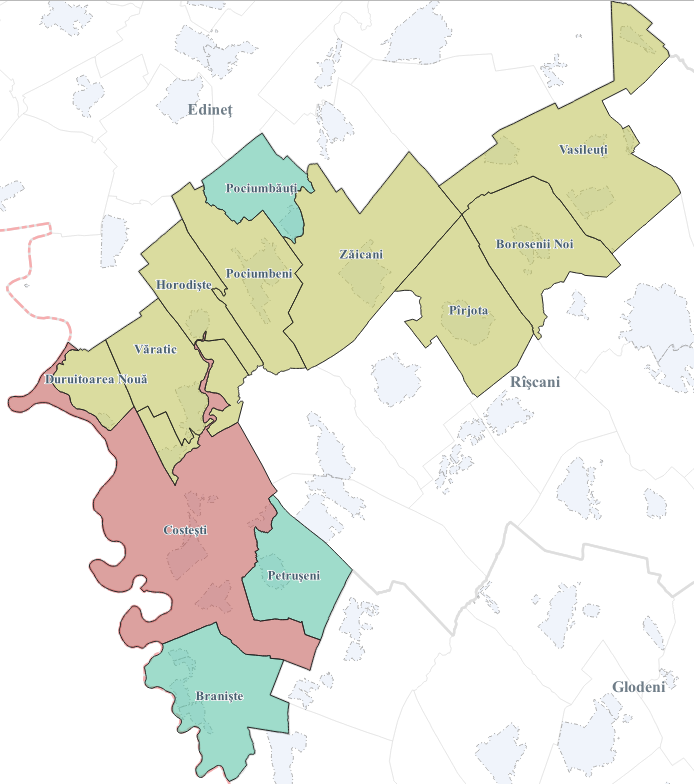 Реализация IPOT в рамках контракта (2023–2026)И.С. «Institutul de Proiectări pentru Organizarea Teritoriului» (IPOT) выполняет комплекс кадастровых работ на основании заключённого контракта (период выполнения: 2023–2026) на территории отдельных UAT двух районов Республики Молдова: Фэлешть — 21 UAT и Рышканы — 12 UAT. Ниже представлена обзорная схема расположения 33 UAT, включённых в работы IPOT в рамках PIEF (2023–2026). Статус выполнения работ (февраль 2026)Ниже представлены изображения по районам Фэлешть и Рышканы, где выполняются работы IPOT. Цветовая индикация отражает текущий статус выполнения в зависимости от доли реализованных объёмов. Расположение UAT по районам (PIEF), окрашенных по статусу выполнения.